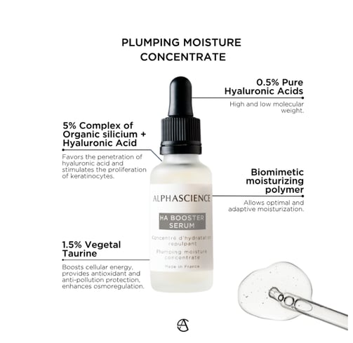 HA BOOSTER SERUM durably and deeply hydrates the skin. Regaining its youthful plumpy touch, the skin glows immediately and over time. It provides long-lasting moisture to dry skin, reducing the appearance of the signs of aging.